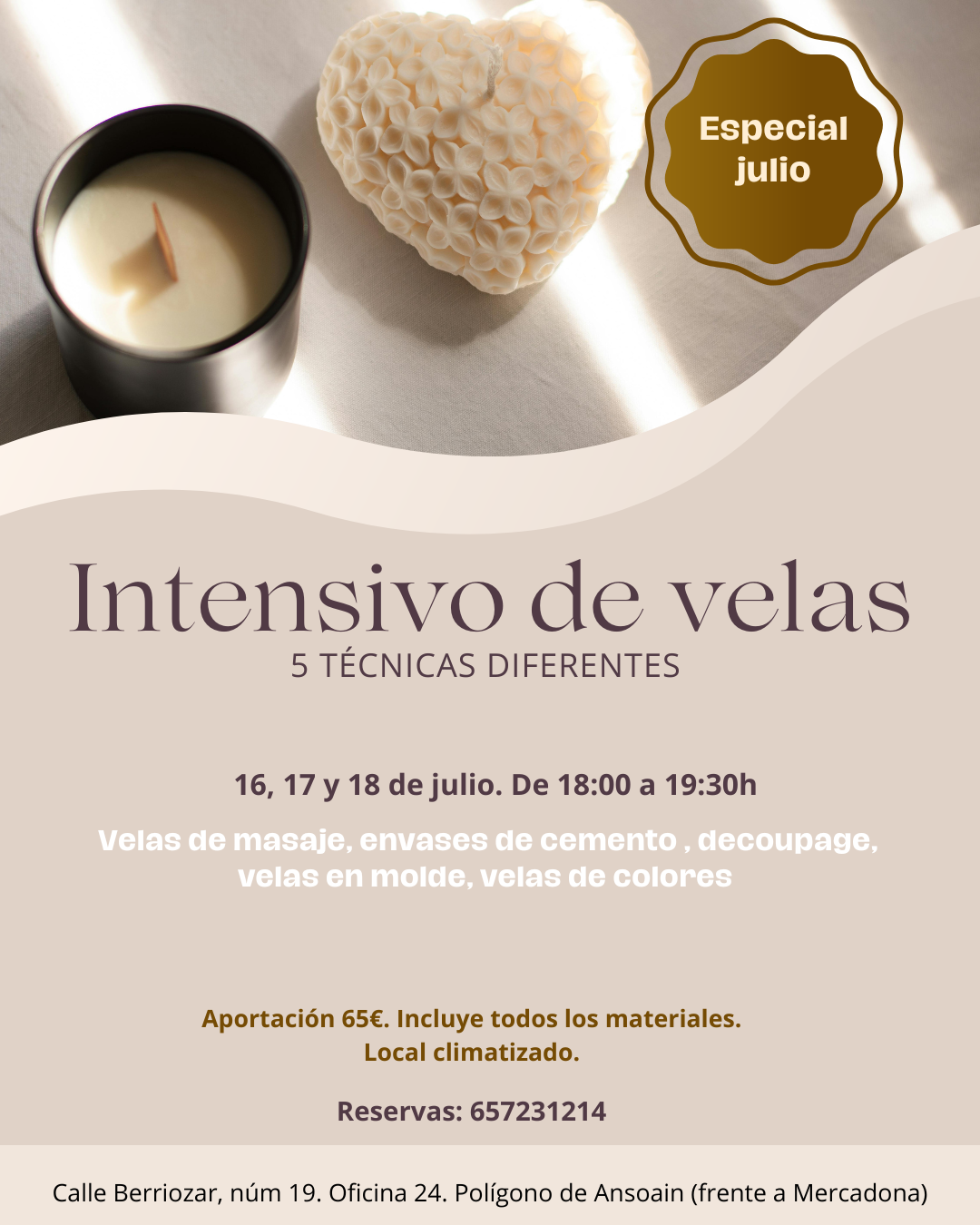 3 días para aprender diferentes técnicas de creación de velas y envases de cemento.