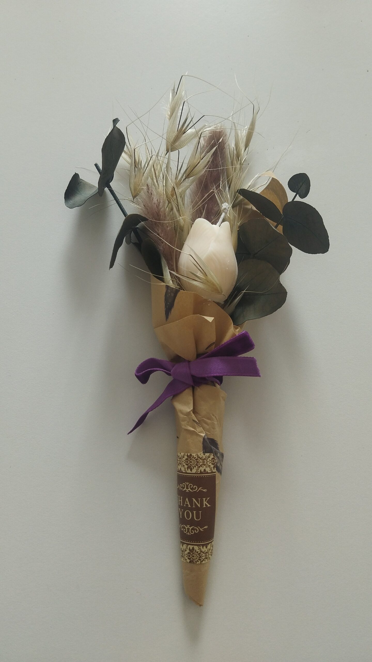 Este ramillete con vela en forma de tulipán es el detalle perfecto para decorar, regalar o dar un toque especial a cualquier espacio.